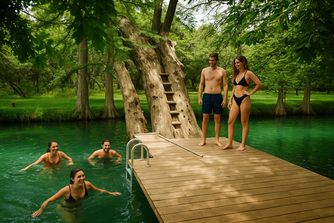 It is a fantastic swimming hole, particularly the section of the crystal clear Comal River between the chute and the small dam located downstream. You should be aware that this location becomes extremely crowded in the afternoon, so go early on weekends or try your luck during the week.