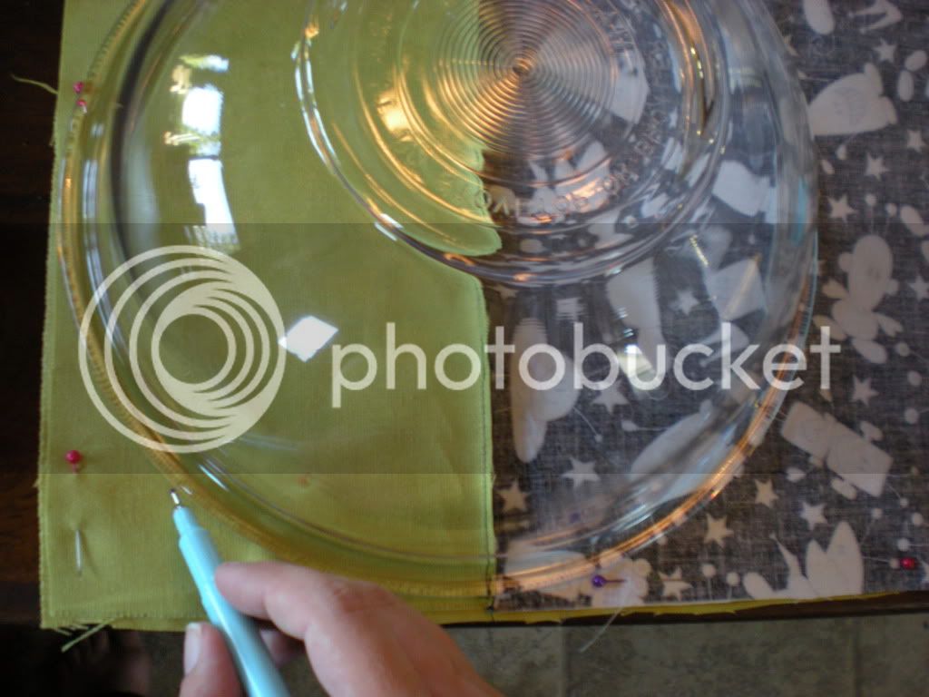 – Using a 12″ bowl or other large circular template, round out all four corners of your car seat cover.