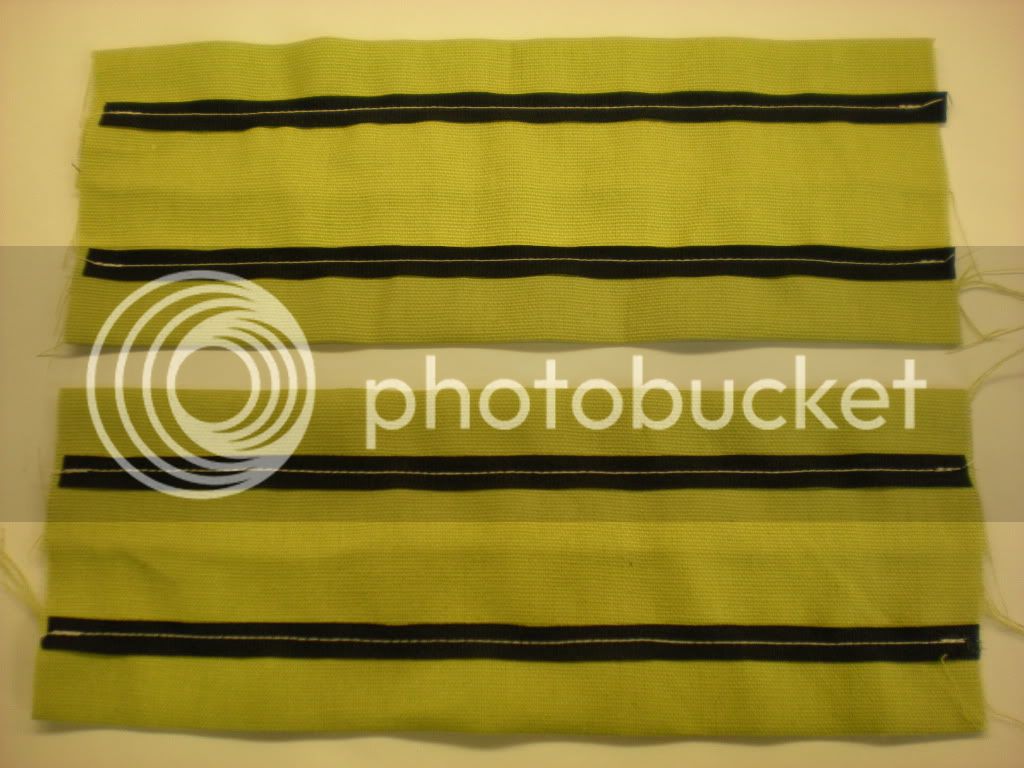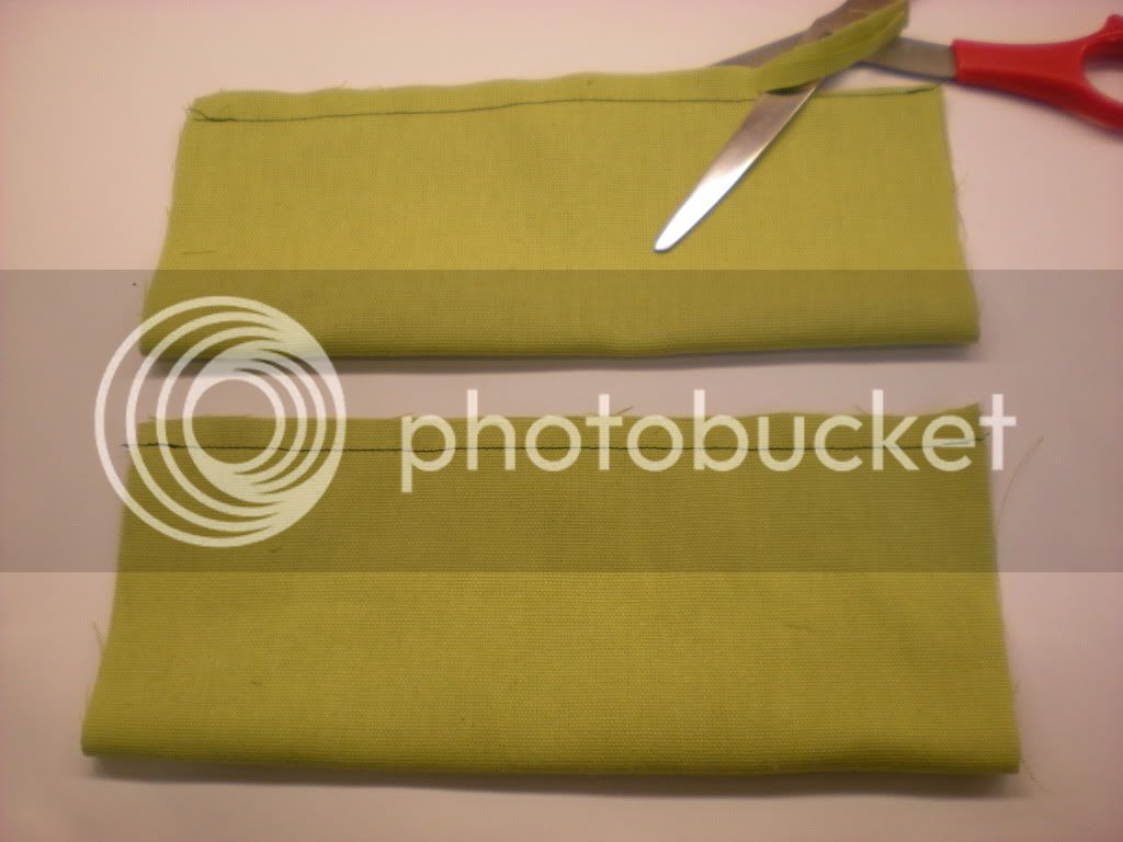 – Sew a straight stitch 1/4″ along the long cut edge of each strap.