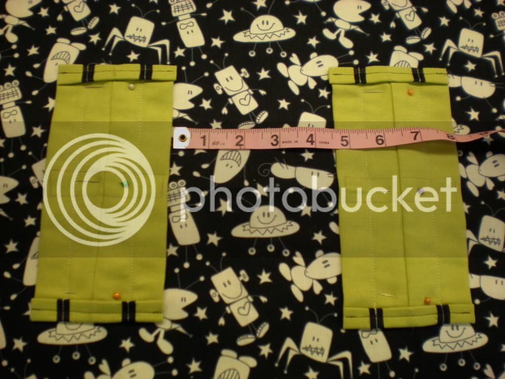 – Using those measurements pin the straps to your car seat cover (wrong side facing up).
