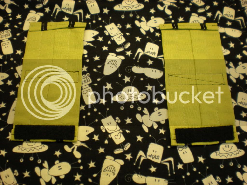 – Sew the loop portion of your velcro onto the inside of the straps closest to the front of the car seat cover. I just sewed a rectangle around the perimeter of the velcro.