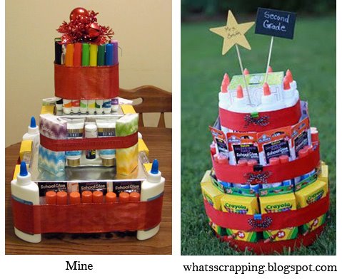 I got the idea for this gift on–you guessed it–Pinterest. I thought it was a great way to dress up some school supplies for a teacher. The end total for mine came in at a little over $35. Below is a picture of mine compared to the original.